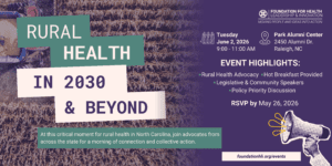 Building a healthy North Carolina can only happen when we amplify the voice of uniquely rural communities. We exist to listen, learn, and lead a movement that keeps rural health at the forefront of every conversation about our state’s health.